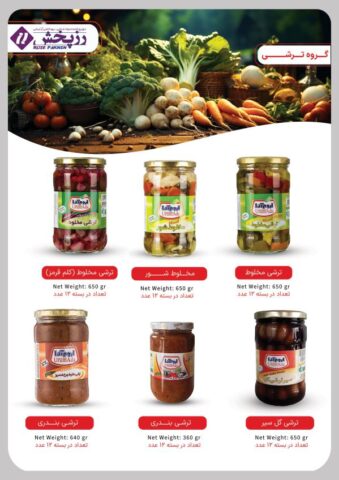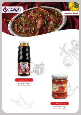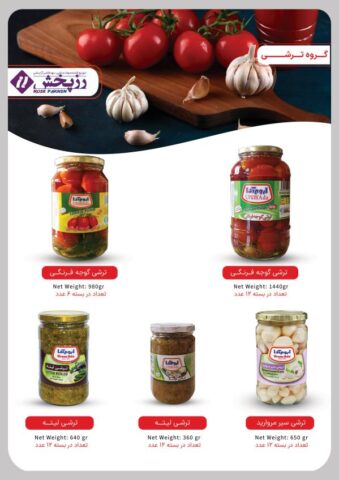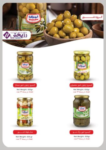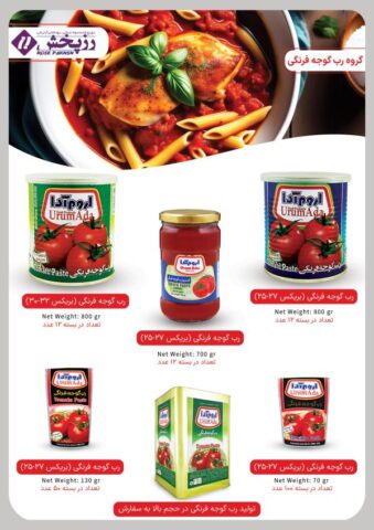 رب گوجه فرنگی، رب انار، سس مایونز، سس کچاپ،سس کم چرب، خیارشور، ترشی، کنسرو، کمپوت، مربا، آبلیمو و …