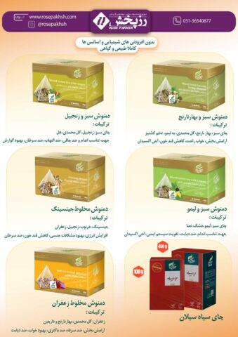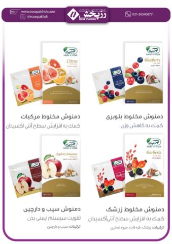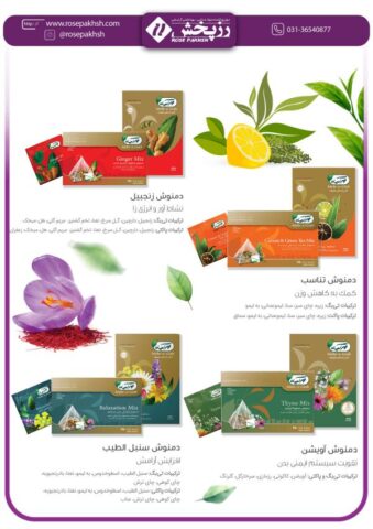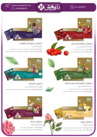 دمنوش مخلوط گل گاوزبان، دمنوش مخلوط چای نرش،دمنوش مخلوط چای سبز و سفید، دمنوش اکیناسه، دمنوش بابونه، دمنوش معطر، دمنوش زنجبیل، دمنوش تناسب، دمنوش آویشن، دمنوش سنبل الطیب، سرکه بالزامیک و …
